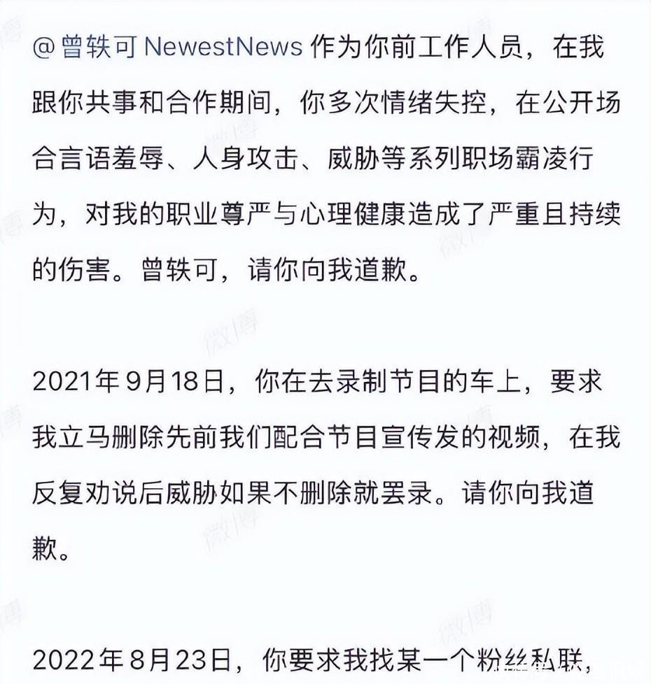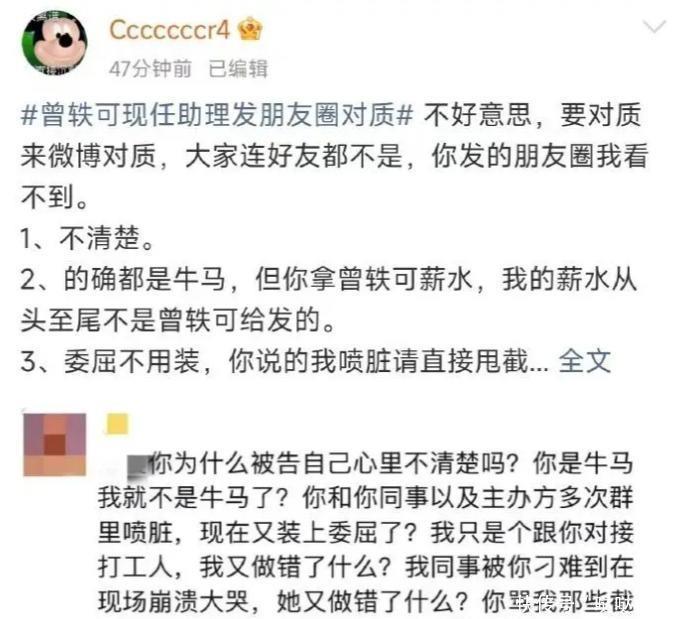 可团队也不是吃素的,马上跳出来反咬一口,说这人曾在群里骂脏话、逼新人哭,连现任助理都指她是个“私生粉”,还被前合伙人安插进来搞破坏。甚至说她在演唱会前逼曾轶可签不平等协议,不然就取消演出。听着像宫斗剧,但曾轶可却说她“只是被人洗脑,本质不坏”。这话听着,怎么都有点自我感动的意味。
